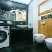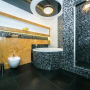 - Два санузла, включая огромную ванную комнату с круглой ванной и душевой кабиной
