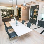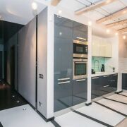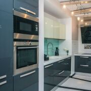 - Холодильник, духовой шкаф, СВЧ, дизайнерская вытяжка, варочная панель