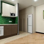 В квартире имеется: диван, шкафы, холодильник, стиральная машинка, телевизор.