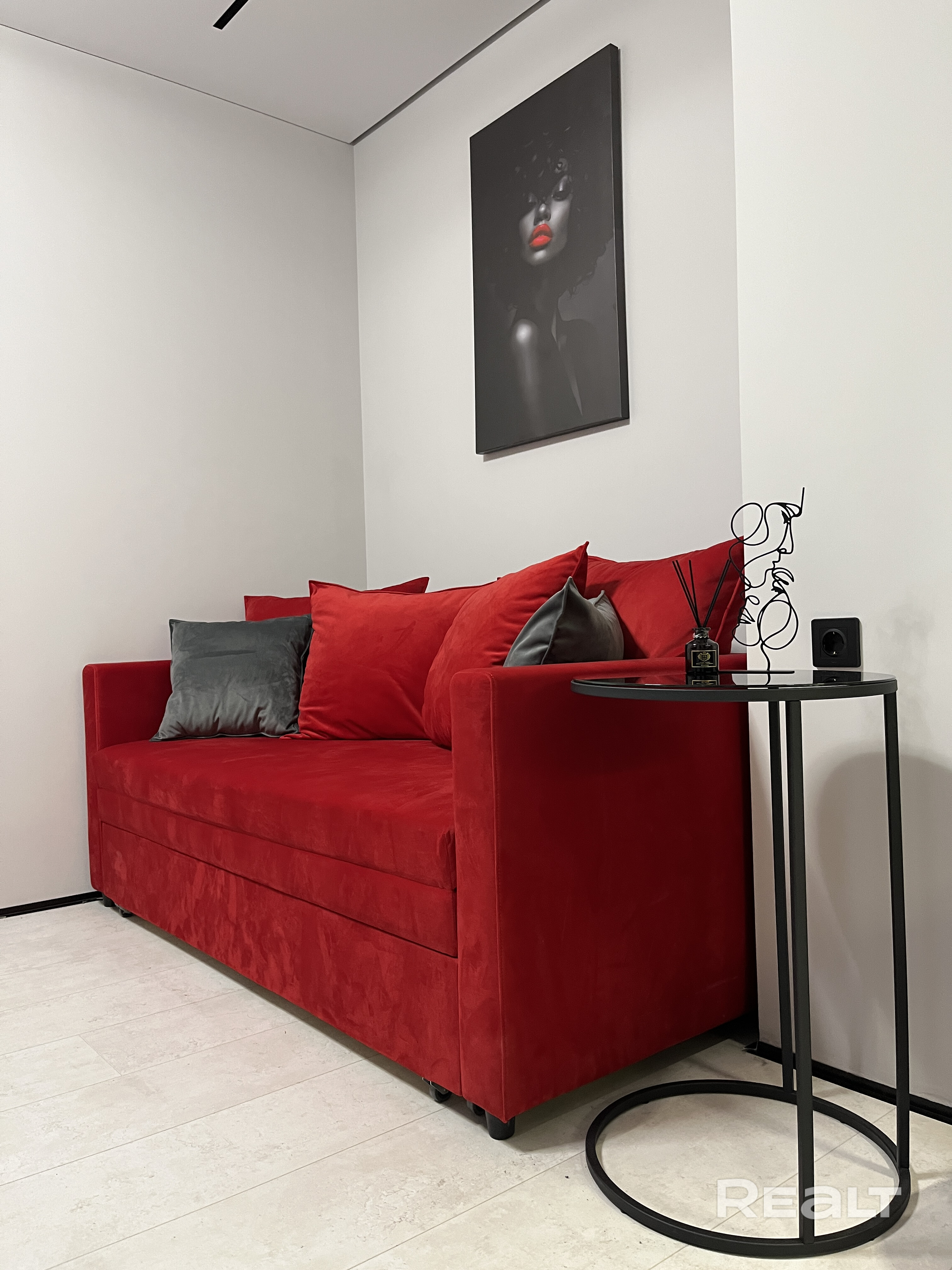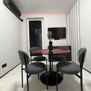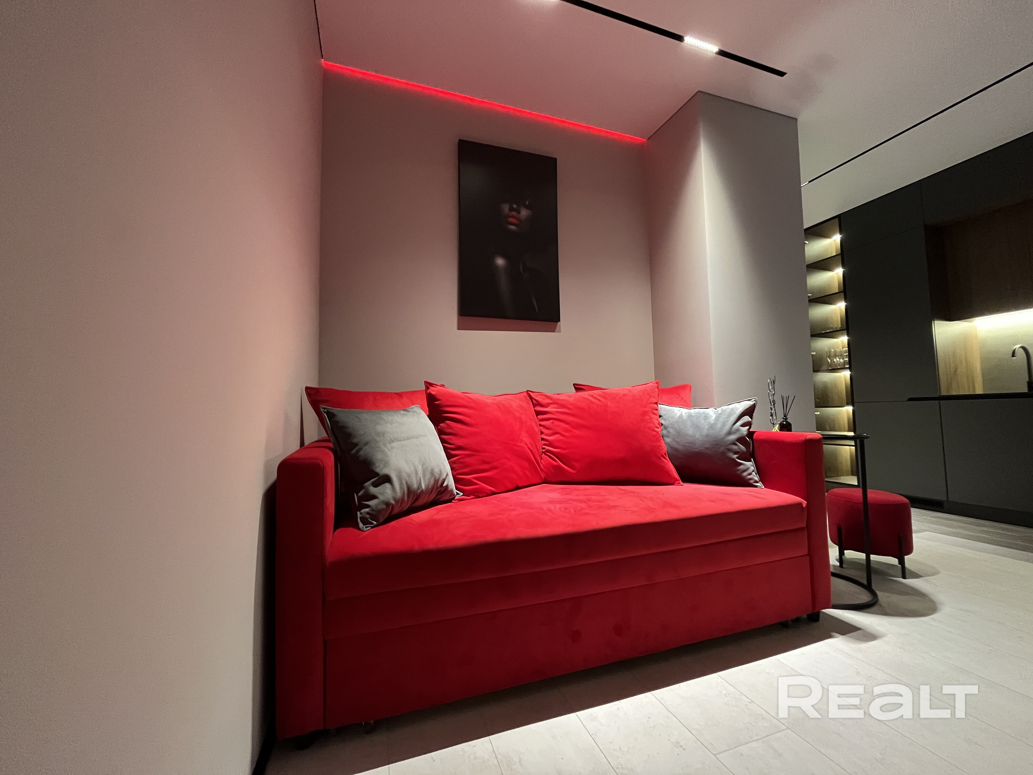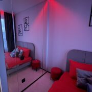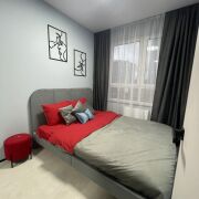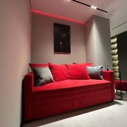 Наша квартира сочетает современный дизайн и уют. Дизайнерский интерьер с акцентами на красный цвет создаёт стильную атмосферу. Просторная гостиная оснащена световыми сценариями и удобным диваном, трансформируемым в двуспальное место. Полностью оборудованная кухня выполнена из премиальных материалов. Спальня с зеркалом на всю стену и романтичной подсветкой. Ванная с душевой кабиной вровень с полом и теплой подсветкой.