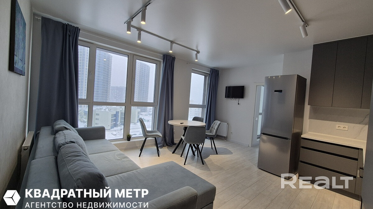 Сдается просторная 2-х комнатная квартира в ЖК Минск Мир со всей мебелью и техникой. Большая просторная кухня-гостиная, отдельная спальня. 4 больших окна с прекрасным видом на город!