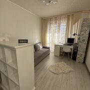 Квартира имеет удобное расположение. Вблизи несколько остановок общественного транспорта, престижная школа, несколько детских садов, поликлиника, популярный спортивный клуб «Мир фитнеса», лыжероллерная трасса. В шаговой доступности ТЦ «Замок», ТРЦ «Palazzo». Имеется парковка во дворе дома. Также при необходимости можно дополнительно снять в аренду гараж. Квартира с мебелью, окна выходят на обе стороны дома. В квартире имеется все необходимое для удобного проживания. Предпочтение: семейным.