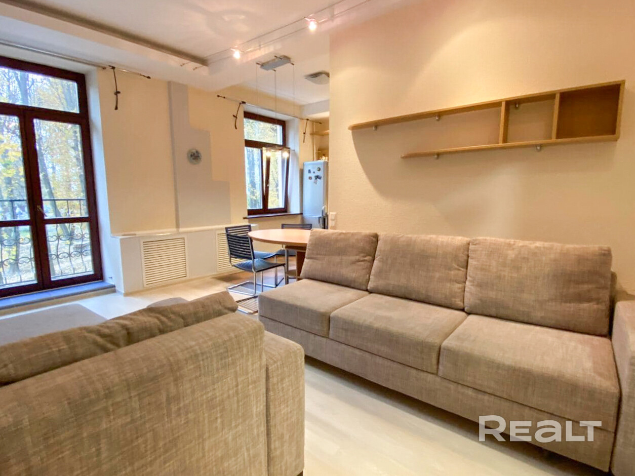 3-х комнатная квартира на ул. Красная, 1. 2-й этаж 5-ти этажного кирпичного дома, сталинка. Площадь 90 м2. Отличный ремонт, готова к заселению. Дом расположен в 2 мин ходьбы от парка Янки Купалы, реки, 5 мин от метро Площадь Победы. В прихожей и спальне большие встроенные шкафы, детская оборудована для проживания двух детей. Есть посудомоечная, стиральная машины, кондиционеры, душевая кабина и ванна-джакузи, в каждой комнате телевизор, высокоскоростной интернет.
