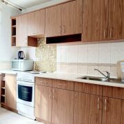 Квартира оборудована  всей необходимой мебелью и бытовой техникой: два новых раскладных дивана, шкафы, два рабочих стола, кухня, стиральная машина, электроплита с духовкой, электро-чайник, холодильник, телевизор, безлимитный интернет.