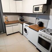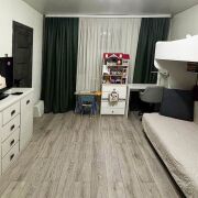 Две изолированные комнаты. Спальня с вместительным шкафом, большой двухспальной кроватью и телевизором. Гостиная с детской кроватью, шкафом для храния вещей,телевизором. Кухня укомплектована всей необходимой мебелью и техникой.