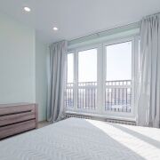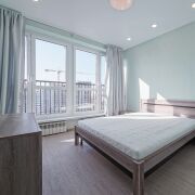- отдельная спальня с двуспальной кроватью, французскими окнами в пол,