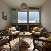 В квартире 2 санузла, просторная лоджия, оборудованная под гостиную зону, гардеробная комната.