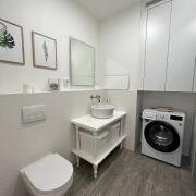 Кухня оснащена качественной бытовой техникой, в ванной комнате-стиральная машина.