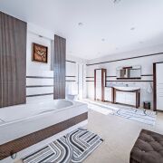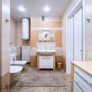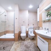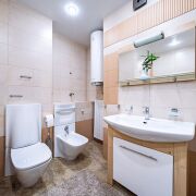 Два санузла - один просторный с ванной для отдыха, второй с душевой кабиной для быстрых сборов. В каждом установлено биде и предусмотрен подогрев пола.