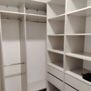 В спальне большая двуспальная кровать с ортопедическим матрасом. В квартире есть отдельная гардеробная - очень много мест для хранения вещей.