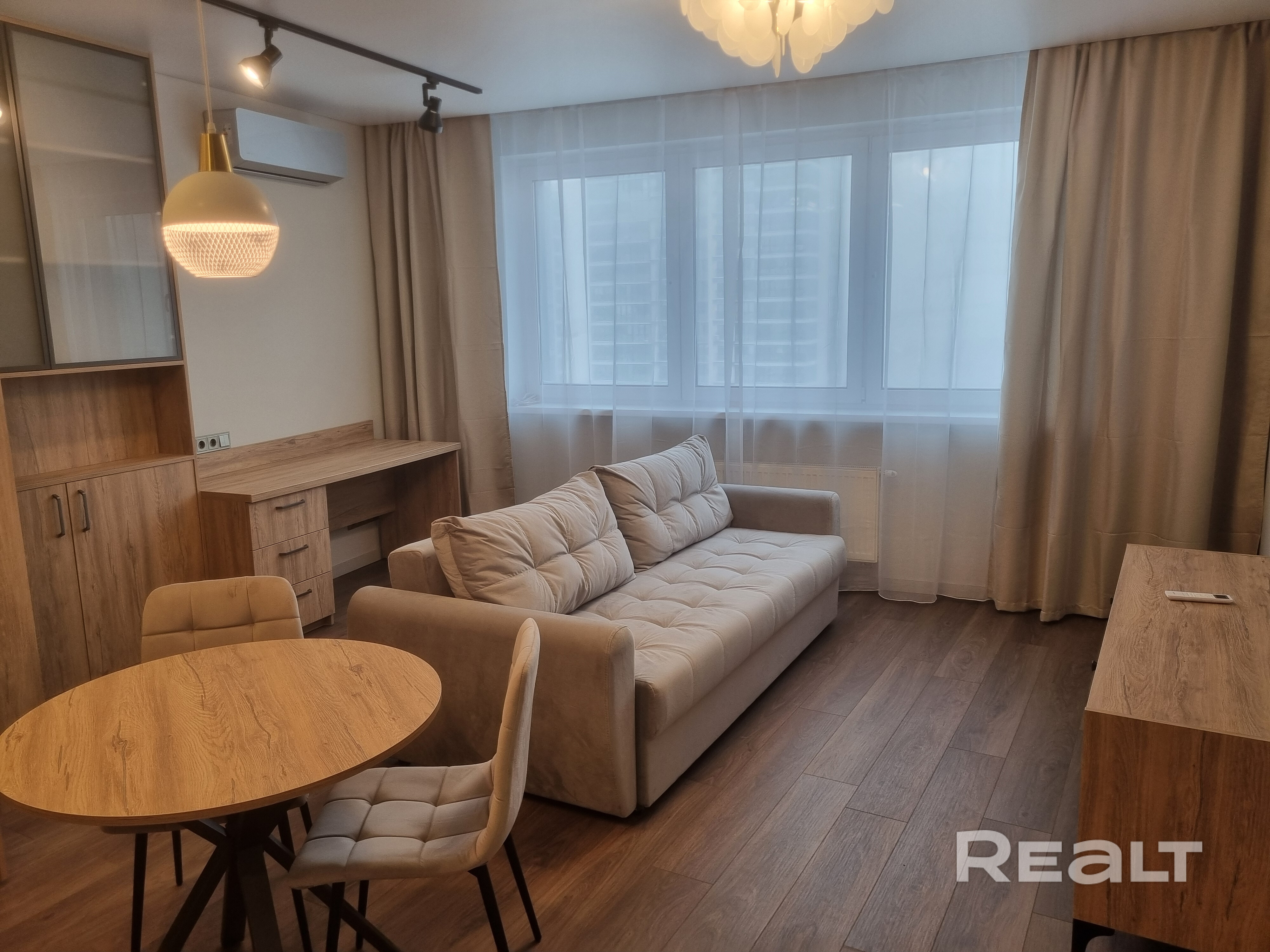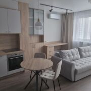 Новая квартира от собственника. Гостинная с кухонной зоной, рабочим местом, обеденным столом, TV-зона, диван раскладывающийся. Кухня оборудована бытовой техникой: встроенный холодильник, индукционная панель, духовой шкаф, посудомоечная машина. Спальня с выходом на лоджию, с двуспальной кроватью с ортопедичнским матрасом. Гардеробная. Сан.узел совмещенный, большая душевая с тропическим душем, смесители встроенные, стиральная машина. Вся техника и мебель новая. Звукоизоляция базовая.