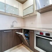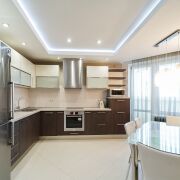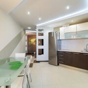 Кухня: площадью 13.5 м2. Полностью укомплектована. Большое количество места для приготовления пищи и удобно расположена столовая зона. Установлена качественная техника: холодильник, посудомоечная машина, духовой шкаф, электропанель СВЧ, вытяжка. Напольное покрытие плитка. Потолок гипсокартон, большое количество естественного и исскуственного освещения. Имеется выход на балкон, площадью 6.0 м2.