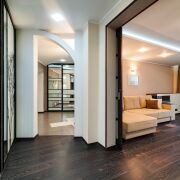 Коридор и прихожая: установлена качественная металлическая дверь, на полу плитка с подогревом и большое количество мест для хранения. В прихожей и в коридоре имеются шкафы-купе для ваших личных вещей.