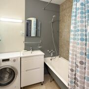 - Квартира полностью укомплектована всей необходимой мебелью и бытовой техникой: большая двухспальная кровать, раскладывающийся диван, несколько шкафов, холодильник, посудомоечная машина, стильная машина, СВЧ-печь, холодильник, газовая плита.