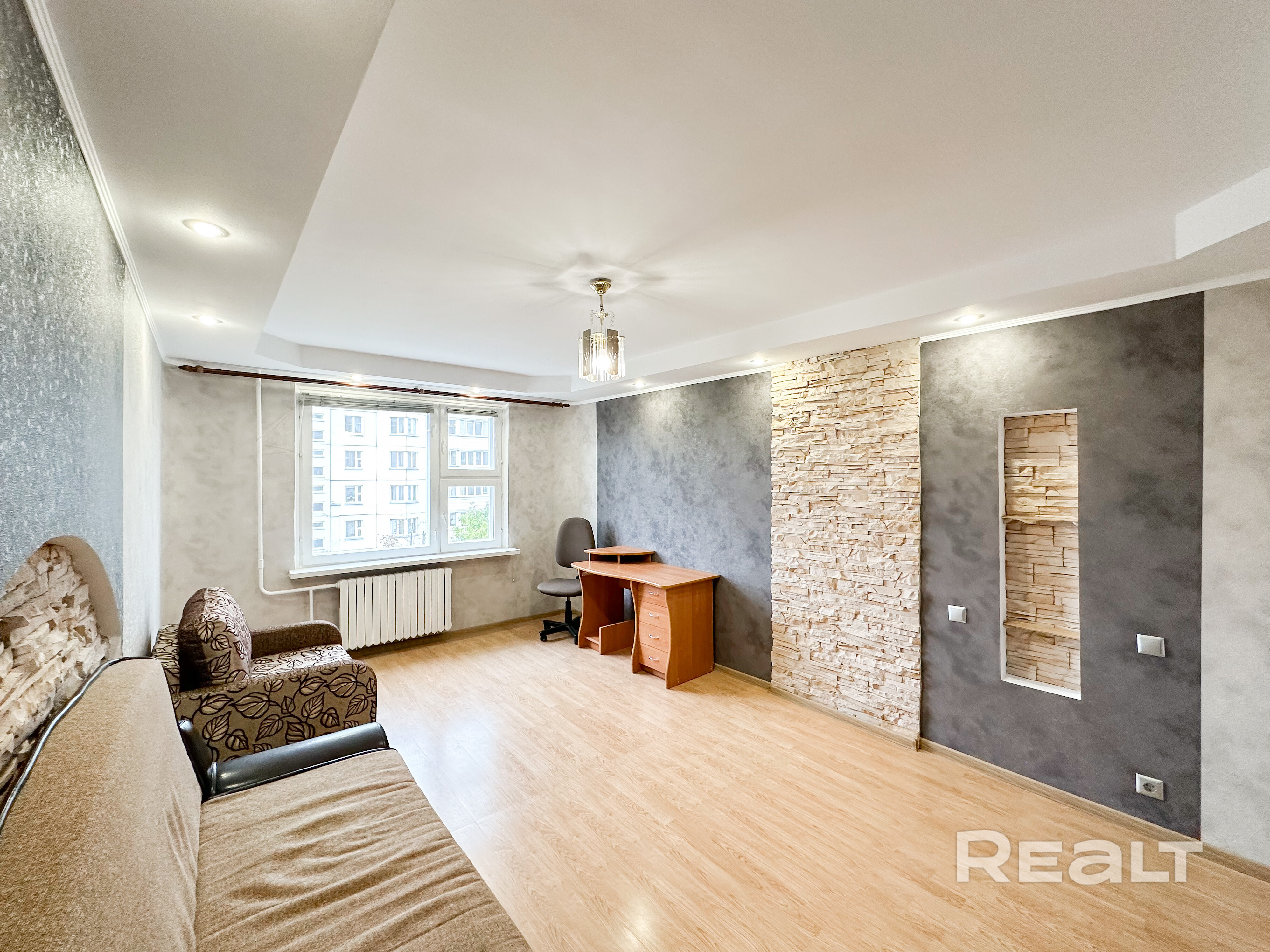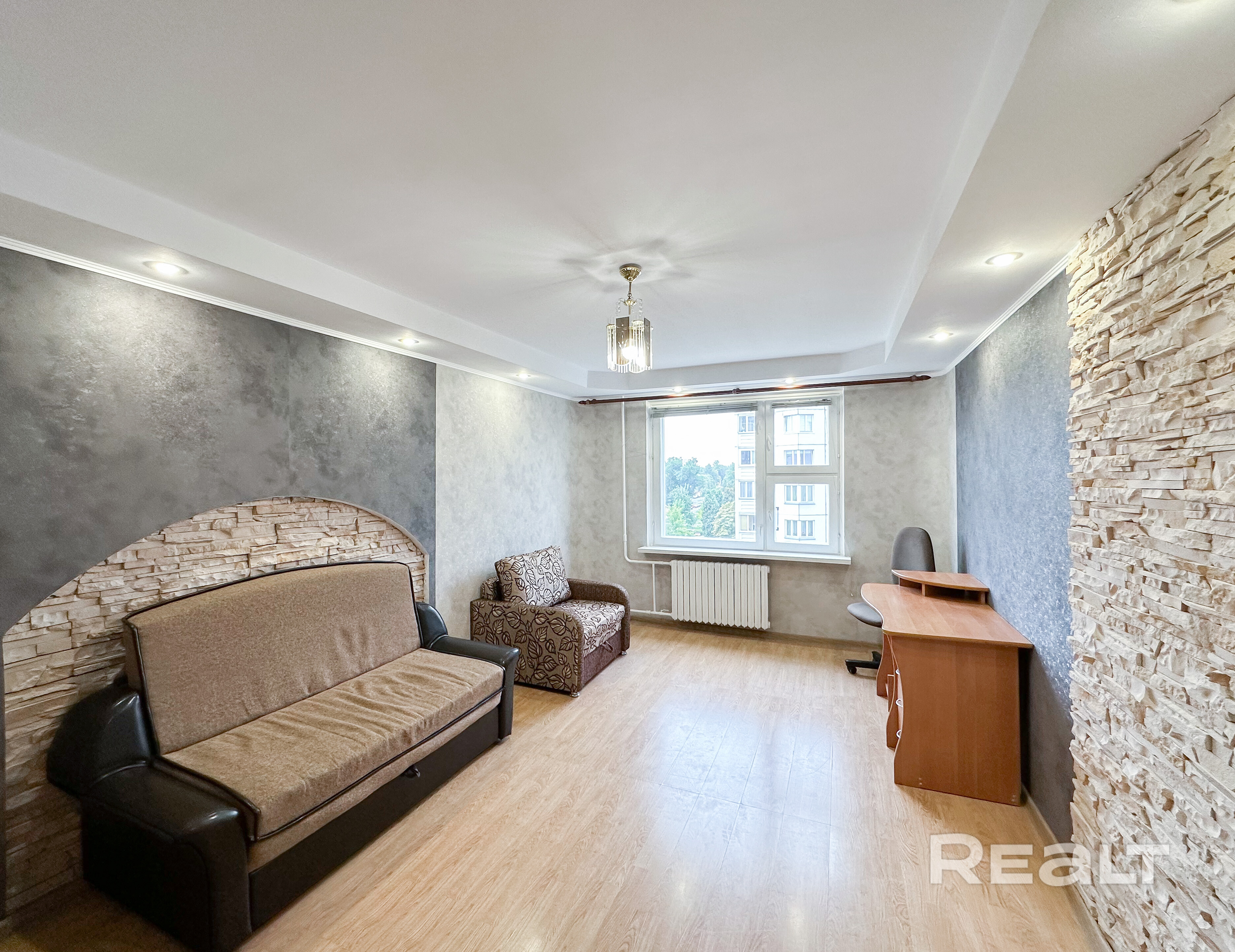Выполнен косметический хороший ремонт, новая кухонная мебель. Сама квартира просторная: большая комната 17,9 м2 и кухня 9,0 м2. Лоджия с отделкой. Уютно. Дверь входная металлическая. Соседи супер.