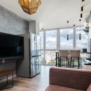Квартира укомплектована всем необходимым для вашего комфортного проживания: встроенные свч-печь, духовой шкаф, посудомоечная машина, мелкая бытовая техника(кофемашина, чайник, пылесос, утюг), телевизор в каждой комнате, кондиционер, высокоскоростной интернет, стиральная машина.
