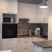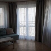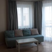 Сдаётся уютная квартира. Укомплектована всем необходимым. Комната огромная 25кв2, разделена на две зоны, зона сна с двуспальной кроватью 1600 и встроенным шкафом для белья., и зона с диваном, столиком для просмотра tv, три окна, одно из них до пола, на полу паркет. Есть большой гардероб 4м2, с полками вешалками. Коридор с большим зеркалом. С/у совмещенный, весь в плитке, ванна, стиралка, проточный водонагреватель,Кухня 10м2, есть всё необходимое, чайник, плита, дух.шкаф, кофе машина, встроенный