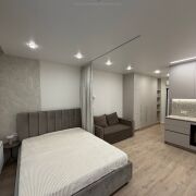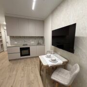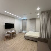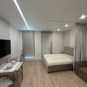 Комфортный 8 этаж. Оборудованная спальное место с кроватью и ортопедическим матрасом Vegas, диван, обеденная зона, телевизор, выведены все розетки под рабочее место, Совмещенный санузел с качественной сантехникой и смесителями, есть тропический душ, каменная столешница, зеркало с подсветкой, установлен бойлер, стиральная и сушильная машина А+++ класса псевдо биде; множество мест для хранения, везде установлены доводчики Blum, продумана система вентиляции, установлены датчики протечек, кондиционер, застекленная лоджия с подогревом и местами для хранения, стильные жалюзи во всей квартире