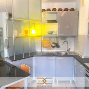 Площадь квартиры 38 метров. Выполнен хороший ремонт. Есть вся необходимая мебель и техника. Просторная кухня с выходом на лоджию: на полу плитка, кухонный гарнитур с бытовой техникой импортного производства: варочная панель - газ, духовой шкаф - электро, вытяжка ARISTON, холодильник BOSCH.