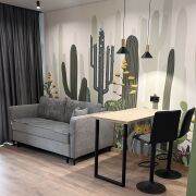 Уютная и светлая квартира-студия укомплектована необходимой новой мебелью и техникой для комфортного проживания. Презентабельное лобби с зоной отдыха и помещением для хранения велосипедов. Три лифта. В шаговой доступности ст. метро Аэродромная, остановки общественного транспорта, торговый центр "Авиа-Молл". Ранее квартира не сдавалась