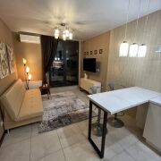 Собственником на длительный срок сдается стильная современная двухкомнатная премиальная квартира с ремонтом от дизайнера, с гардеробной комнатой в спальне, с большим окном и широким подоконником, с большой террасой (мебель для отдыха) и с американской кухней, в знаковом доме в Маяк Минска. Красивый подъезд с выходами на бульвар Пикассо и к фонтану Дана, с грузовым и пассажирским лифтами. Высокий этаж. Вид на зеленый массив, водоем и национальную библиотеку.