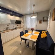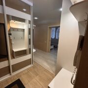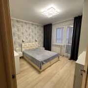 Уютная, светлая квартира полностью готова для проживания семьи с 2-мя детьми. Детская разделена на 2 зоны - учебную и спальную. Достаточно много мест хранения. В спальне большая 2-спальная кровать с нишей для хранения, шкаф, комод, туалетный столик. Выход на просторную лоджию с панорамными окнами. Кухня полностью оборудована бытовой техникой - холодильник, духовой шкаф, СВЧ, электрическая варочная панель, посудомоечная машина, чайник, телевизор. В ванной комнате - стиральная машина.