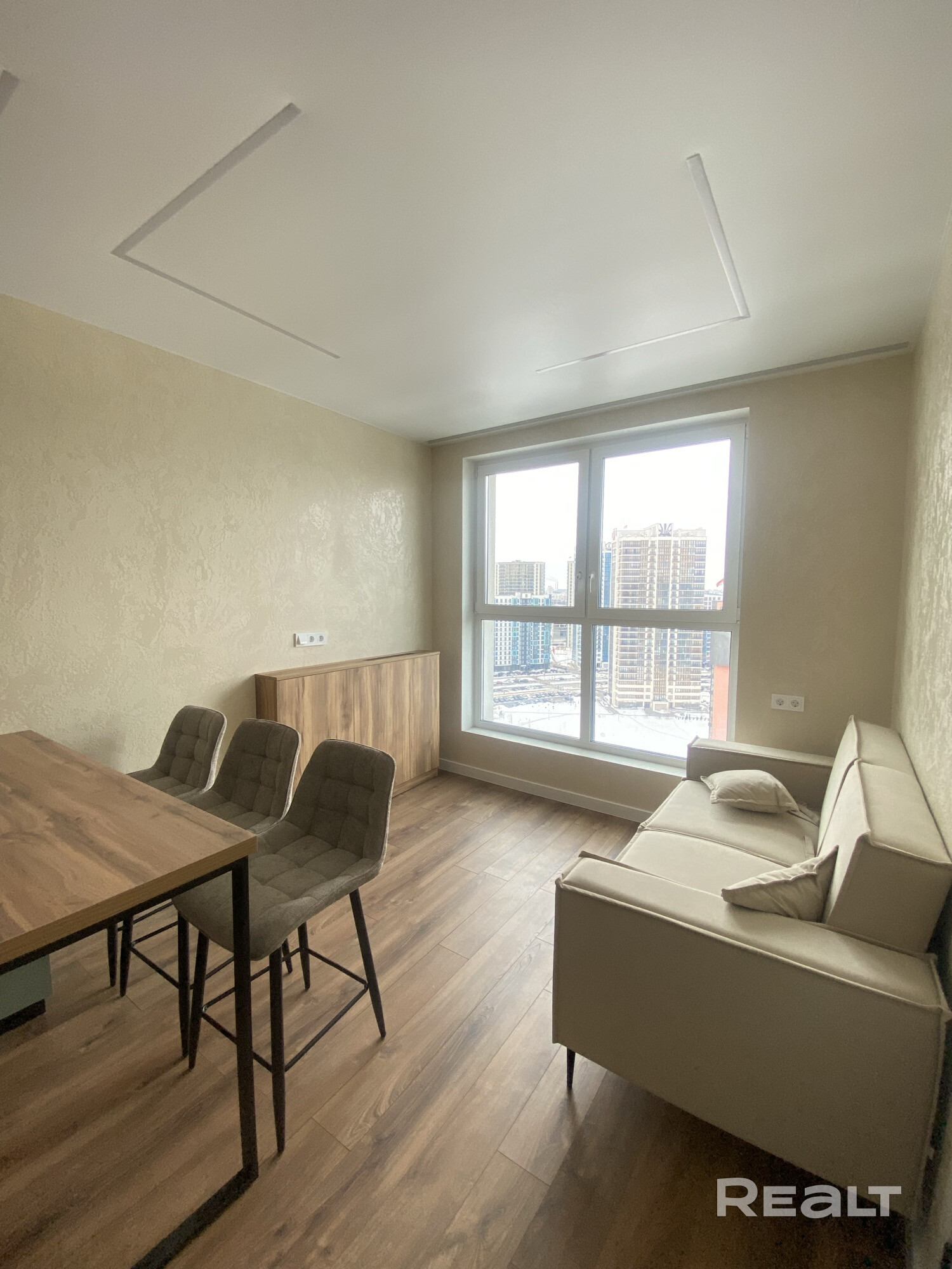 Сдается квартира (евродвушка) в новом доме Golden Gate Park (ул. Леонида Левина, 7) на 18 этаже. Отдельная спальня со шкафом и выходом на лоджию, гостиная совмещена с кухней + наличие просторной гардеробной. В квартире только сделан ремонт, все свежее и чистое. Полностью укомплектована мебелью и техникой. Сдается на длительный срок гражданам РБ, без детей и животных. Оплата +залог+коммунальные платежи (в квартире прописан человек). От собственника. Не агентство!!!