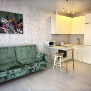 Сдается теплая студия с панорамным видом из окна. Около дома достаточное количество парковочных мест. 750м до метро Аэродромная. Сделан качественный ремонт. Есть посудомойка, холодильник, стиралка, чайник, микроволновка.