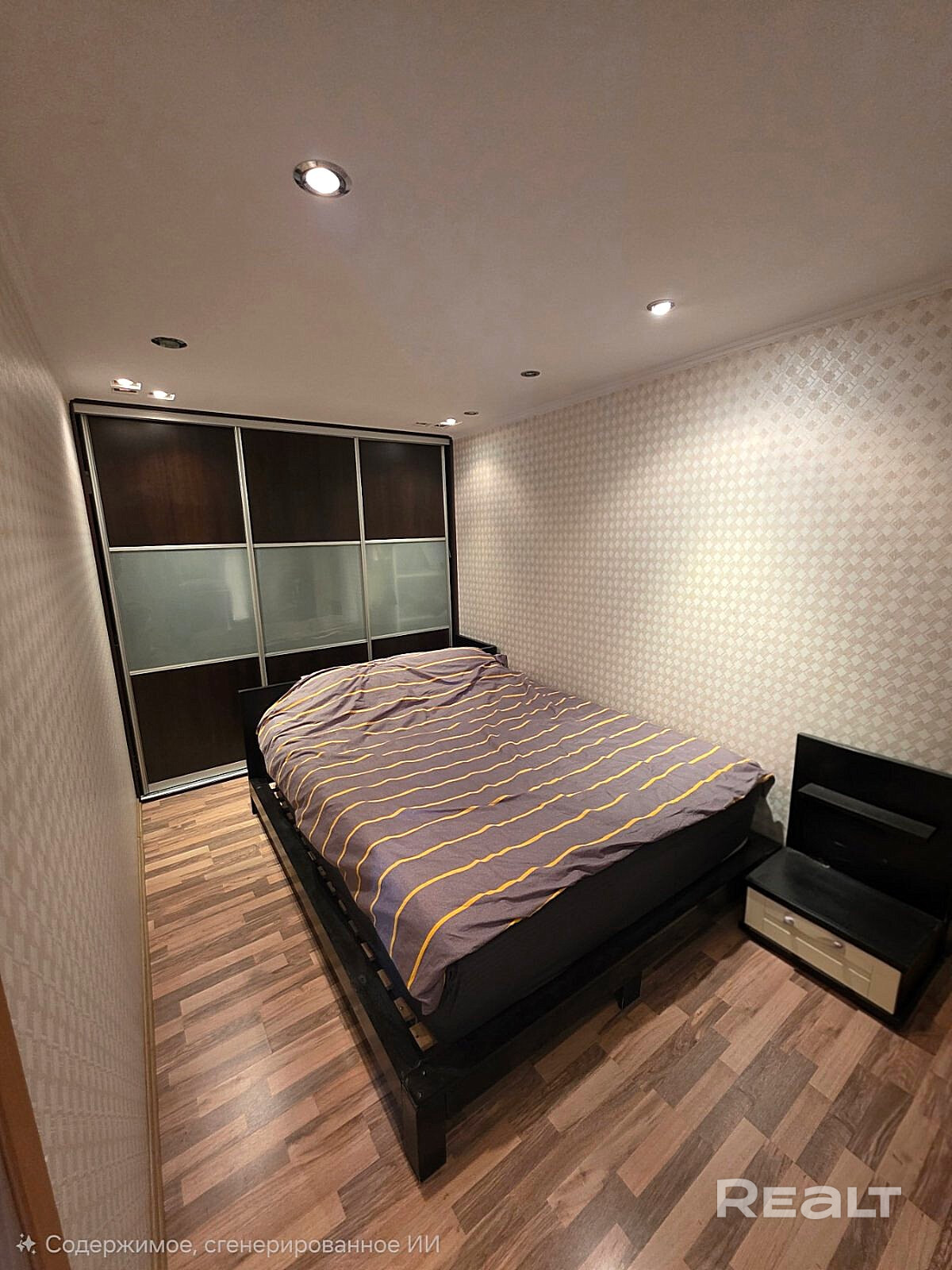 В квартире имеется: диван, шкафы, холодильник, стиральная машинка, двуспальная кровать.
