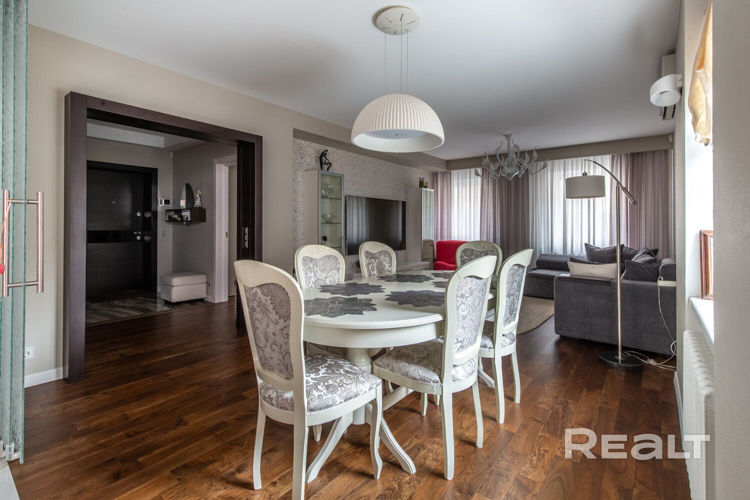 Сдаётся стильная 5-комнатная квартира площадью 130 м2 по адресу: ул. Червякова, 5 — в одном из самых зелёных и престижных районов столицы, рядом с Комсомольским озером и парком Победы.