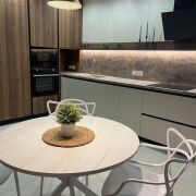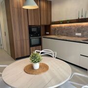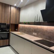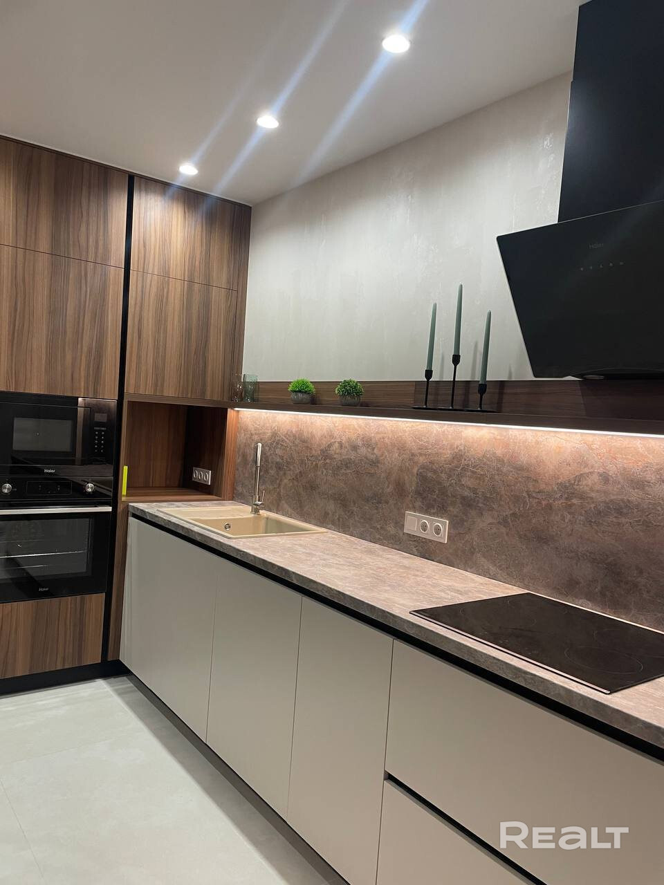 Полный комплект встроенной техники: Посудомоечная и стиральная машины, холодильник, современная варочная панель, духовой шкаф, микроволновая печь. Телевизор по запросу.