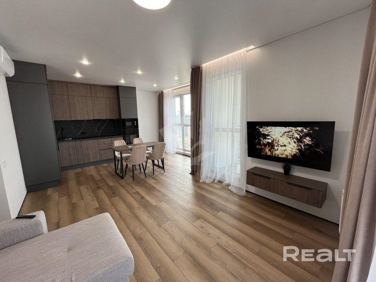 Сдаётся большая, светлая и уютная квартира в Минск Мире по адресу: Игоря Лученка 26! Квартира расположена на 24 этаже 25 этажного дома, полностью укомплектована мебелью и техникой для комфортного проживания.