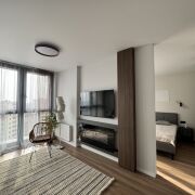 Сдается просторная солнечная квартира с дизайнерским ремонтом на 21 этаже 25-этажного дома. Полная комплектация: мебель, техника (посудомоечная машина, бойлер), уютный камин, кондиционер, гардеробная. В квартире есть одна изолированная спальня и кухня-гостиная.Отличная локация! • 3 мин до парка Челюскинцев • Рядом метро "Московская"и "Парк Челюскинцев" • Магазины, кофейни, пункты выдачи Ozon/WB Идеальный вариант для тех, кто ценит комфорт, уют и удобное расположение в центре Минска! Без животных