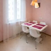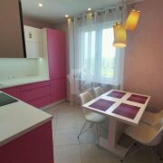 Отличный ремонт. Красивый вид из окна. Балкон утепленный, кроме того, полы с подогревом. Можно обустроить уютное рабочее место, где будет комфортно работать в любое время года. В спальне есть турник, большой шкаф для хранения вещей, прикроватные тумбочки с подсветкой и удобная двуспальная кровать.