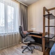 Четыре комнаты (гостиная, спальня, кабинет и детская) и отдельная кухня.