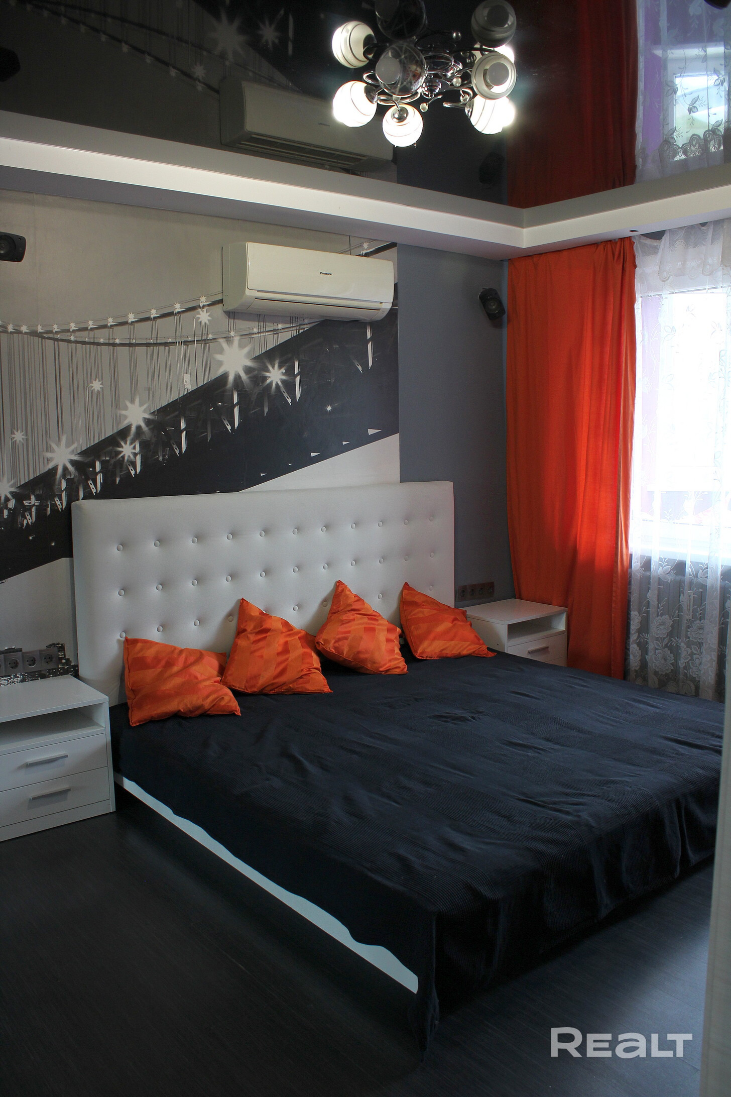 В квартире имеется: диван, шкафы, холодильник, стиральная машинка, двуспальная кровать, кондиционер.
