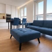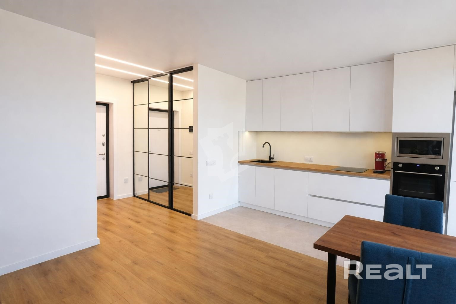 Квартира полностью оборудована всей необходимой мебелью и техникой. Из бытовой техники: посудомоечная машина, индукционная варочная поверхность и электрический духовой шкаф, встроенная СВЧ-печь и холодильник, стиральная машина.