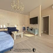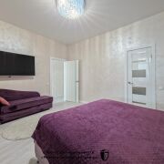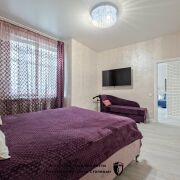 В квартире выполнено грамотное зонирование, в спальне оборудована вместительная гардеробная комната.