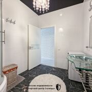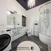 Санузел совмещенный, просторный, с установленной душевой кабиной и стиральной машиной.