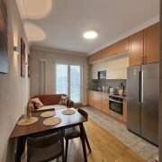 Встроенная кухня с доводчиками и техникой (духовой шкаф, варочная поверхность, посудомоечная машинка, СВЧ и холодильник). Укомплектована новой посудой (чайный сервис, тарелки, сковороды, столовые приборы, заварник для чая, разделочные доски, баночки для сыпучих продуктов и специй.) Так же есть кофемашина, чайник, тостер, блендер, телевизор!