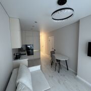 Первое заселение. Сдается 2 комнатная квартира с хорошим ремонтом. Полностью укомплектована. Отдельная спальня, большая гардеробная + кухня гостинная. Все техника и мебель. (кондиционер, стиральная машина. телевизор)