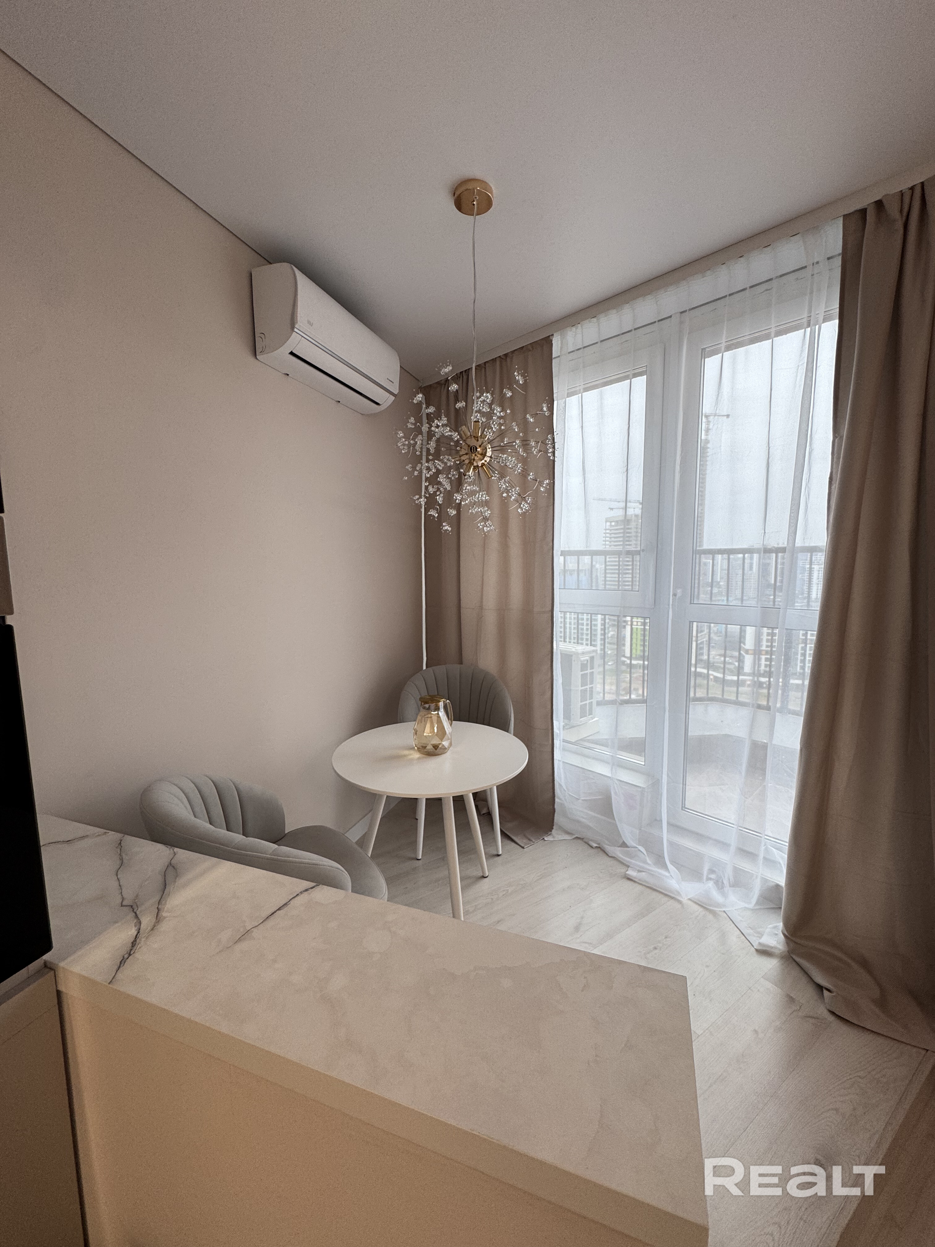 Сдается квартира студия, полностью укомплектована всем необходимым ( посуда, ТВ . кондиционер, холодильник, свч, стиральная машина) Отдельно выделена обеденная и спальная зона (есть возможность закрыть шторами).