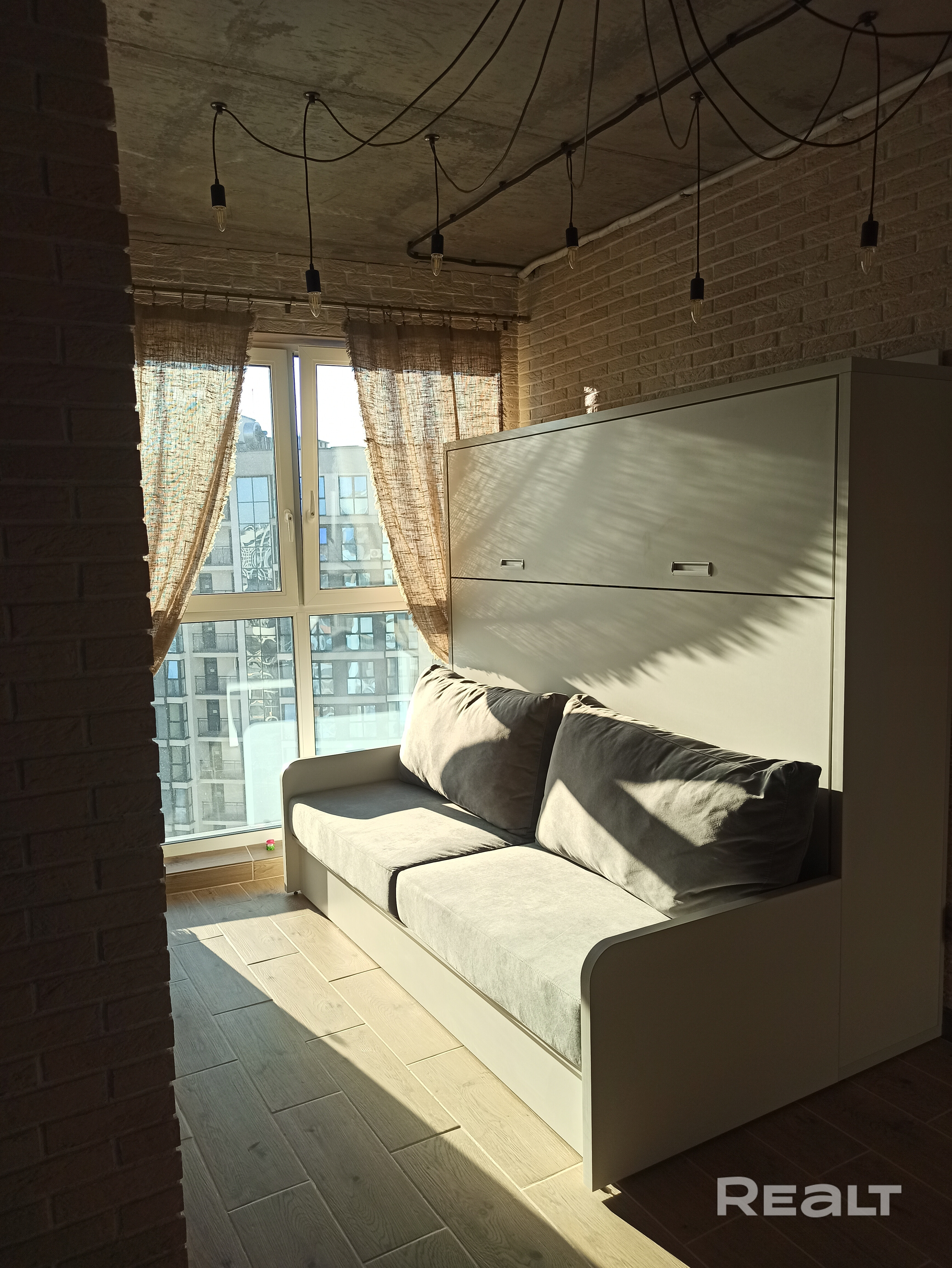 Сдаётся уютная квартира студия 29.7кв м. 24 этаж по договору гражданам РБ, без животных. В квартире имеется кондиционер, бойлер, духовой шкаф, стиральная машина, вместительный шкаф-купе, горизонтальный и вертикальный шкаф-диван-кровать от МаксСтайл. Прописан 1 человек. Стоимость аренды + коммунальные услуги. Залог обязательно. Первое заселение. Только долгосрочная аренда.