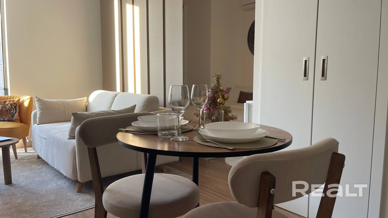 Сдается уютная квартира на третьем этаже клубного дома, построенного в 2024 году. В квартире выполнен дизайнерский ремонт, что создает атмосферу уюта и комфорта. Просторная жилая зона включает в себя современную мебель и телевизор. Кухня оборудована всем необходимым для комфортного приготовления пищи.