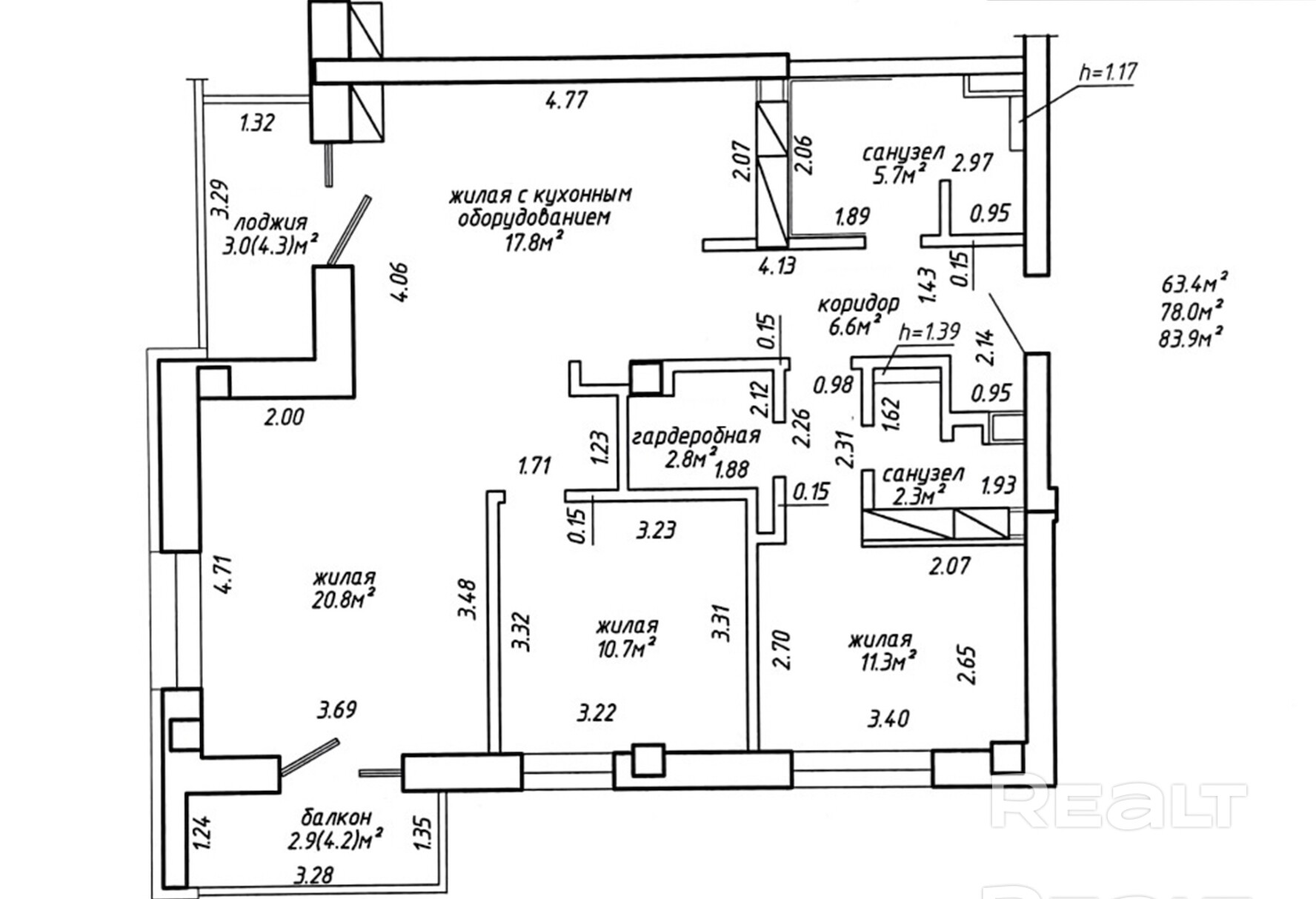 83.9 м²
