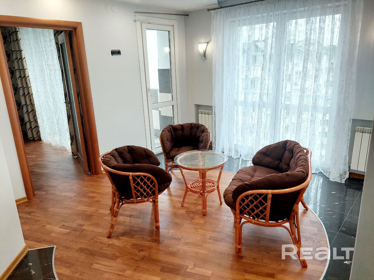 2 балкона застеклены, 2 отрытых (очень удобно загорать! Зональная многоуравневая подсветка во всех комнатах. Взрослая спальная зона отделена от детской большим холом!