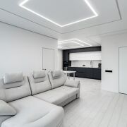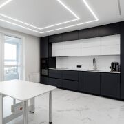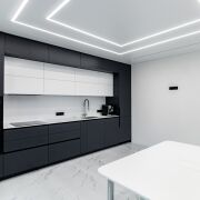 Встроенный холодильник, стиральная машина, бойлер, духовой шкаф, варочная панель.