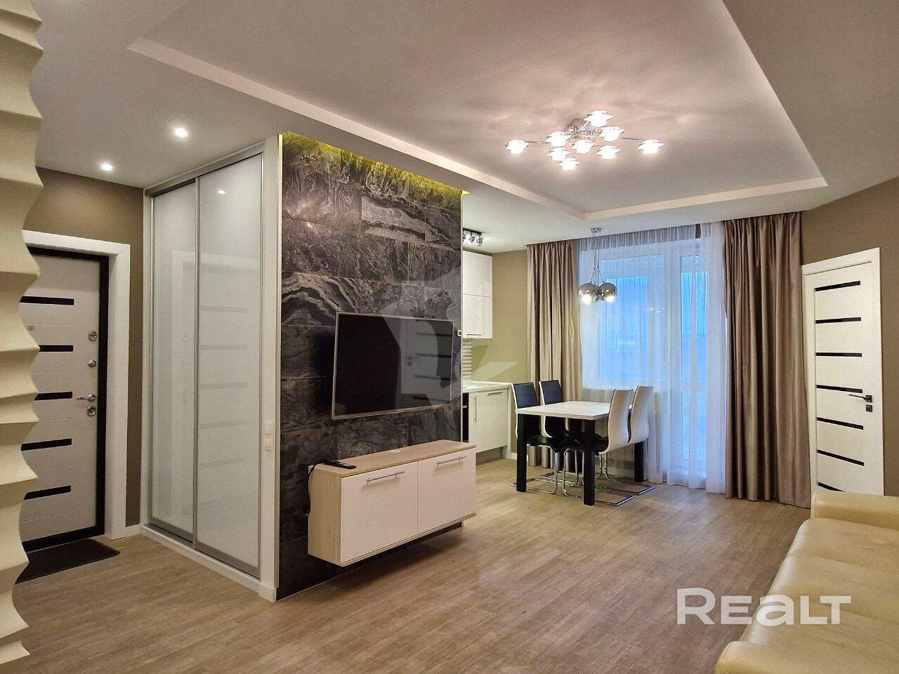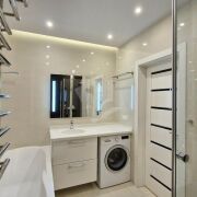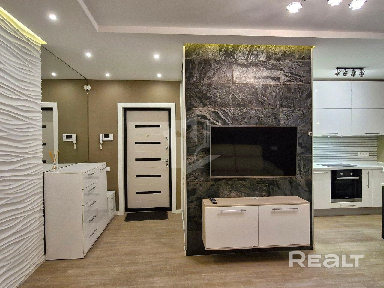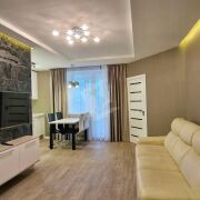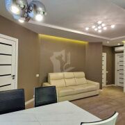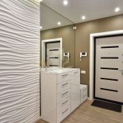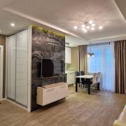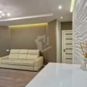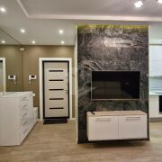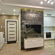 Выполнен дорогой дизайнерский ремонт с использованием натурального камня, 3D-панелей, качественного паркета и керамогранита с тёплыми полами. Здесь всё говорит о статусе и продуманности: стильные решения, гармония света и форм, дорогие материалы и ощущение уюта на каждом шагу.