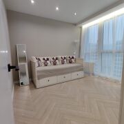 Сдаётся евротрёхкомнатная квартира с дизайнерским ремонтом на длительный срок Уютная, полностью благоустроенная квартира на 14 этаже. Современный дизайнерский ремонт, качественные материалы, продуманная планировка, много мест для хранения. Квартира полностью укомплектована: кухня-гостиная с раскладным диваном посудомоечная машина духовой шкаф, варочная панель, вытяжка стиральная машина встроенный холодильник телевизор кондиционер высокоскоростной интернет