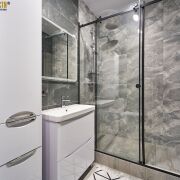 Квартира полностью укомплектована всей необходимой мебелью и техникой: посудомоечная, стиральная машина, духовой шкаф, микроволновая печь. Большая комфортабельная гардеробная. Санузел оснащен большой удобной душевой. Панорамные окна.